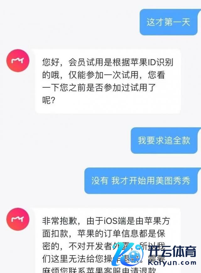 彼时,好意思图秀秀客服回答称,iOS 端会员试用是笔据苹果 ID 识别,一个 ID 只可用一次免费试用,退费也要关系苹果客服,但这是罗恩第一次试用,一系列的操作让她很迷惑。