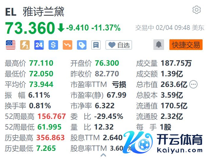 雅诗兰黛(EL.US)跌11.37%,报73.36好意思元。音尘面上,雅诗兰黛第二财季营收40亿好意思元,同比着落6%,阛阓预估39.8亿好意思元;退换后每股收益0.62好意思元,阛阓预估0.63好意思元。该公司瞻望,遗弃3月31日的第三财季,净销售额将着落10%至12%,分析师预期为着落6.8%。此外,手脚企业重组谋划的一部分,雅诗兰黛将镌汰5800至7000个责任岗亭。(格隆汇)